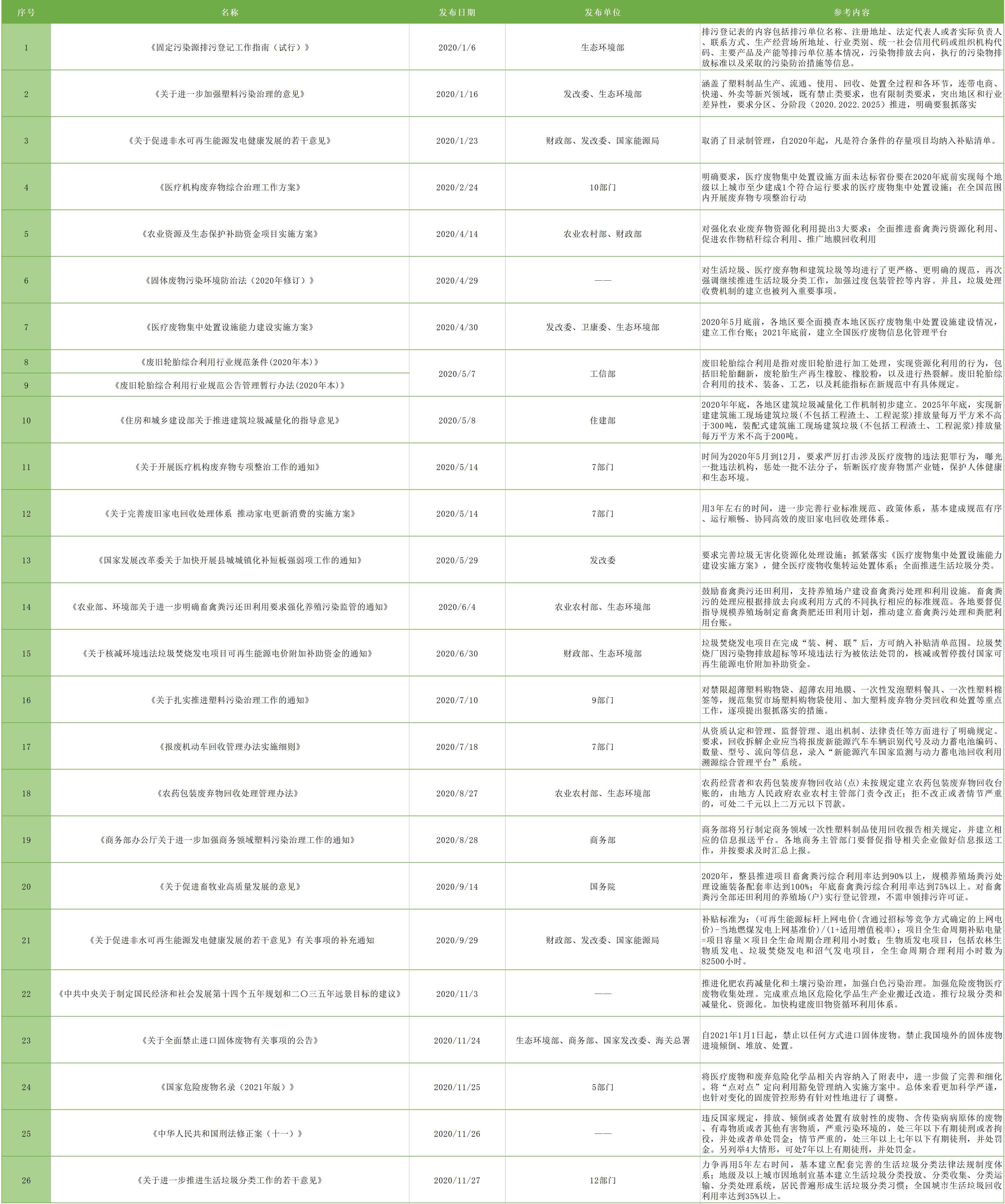 三、写在2021年开篇的5大关注点 综上,便于我们看清2021年,“十四五”的起始之年,固废领域可挖掘的机遇在哪里,不如作如下总结: