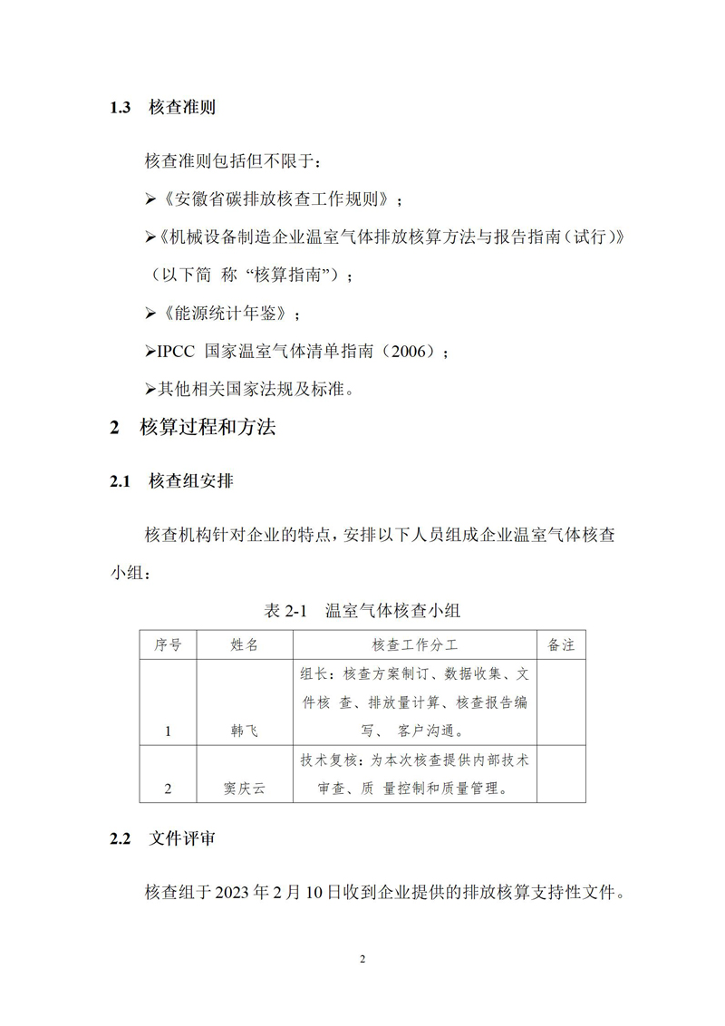 安徽乐鱼leyu环保科技股份有限公司2022年度温室气体排放核查报告