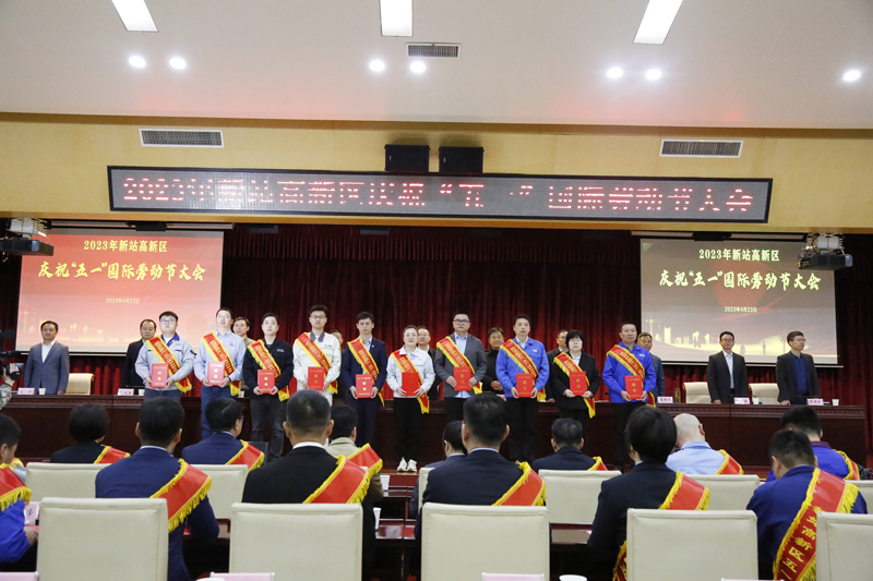 为大力弘扬劳模精神、劳动精神、工匠精神,4月23日上午,新站高新区举行庆祝“五一”国际劳动节大会。区党工委书记、管委会主任黄卫东,市总工会党组成员、副主席郭玉玺,区领导高同国、宋德润、王斌等出席活动,部分省市劳动模范、先进工作者和企业职工代表共同参加了庆祝大会。