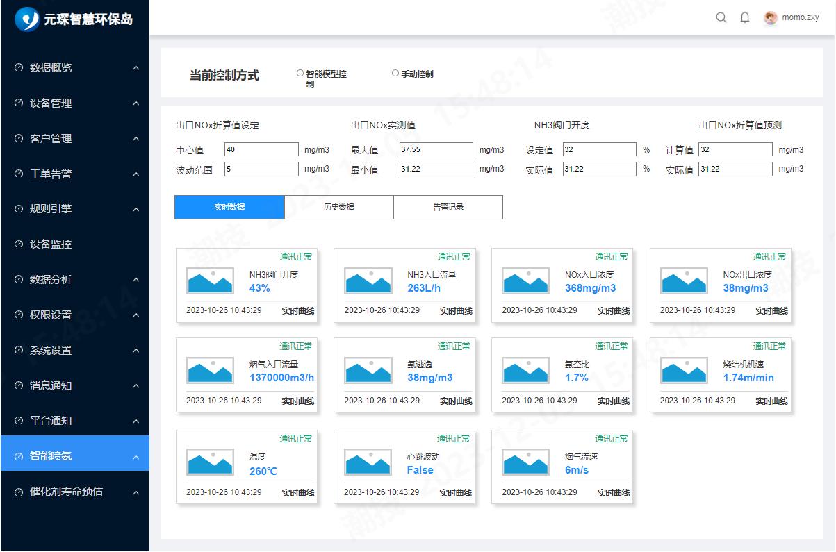 图3 乐鱼leyuAI能碳管理平台智能喷氨截图