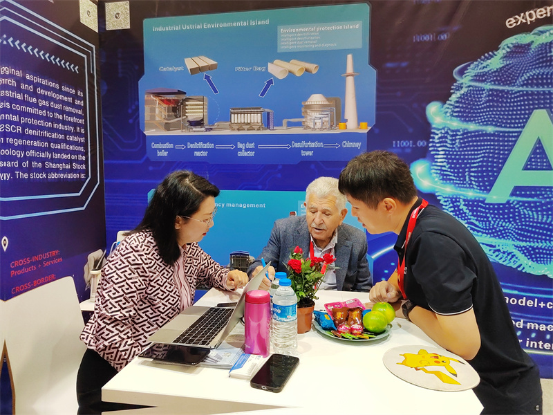 此外,乐鱼leyu科技的两大主营产品:高端除尘过滤材料与SCR脱硝催化剂也在展会上亮相,吸引众多国际客户交流合作,进一步展现了乐鱼leyu科技在行业内的广泛影响力。